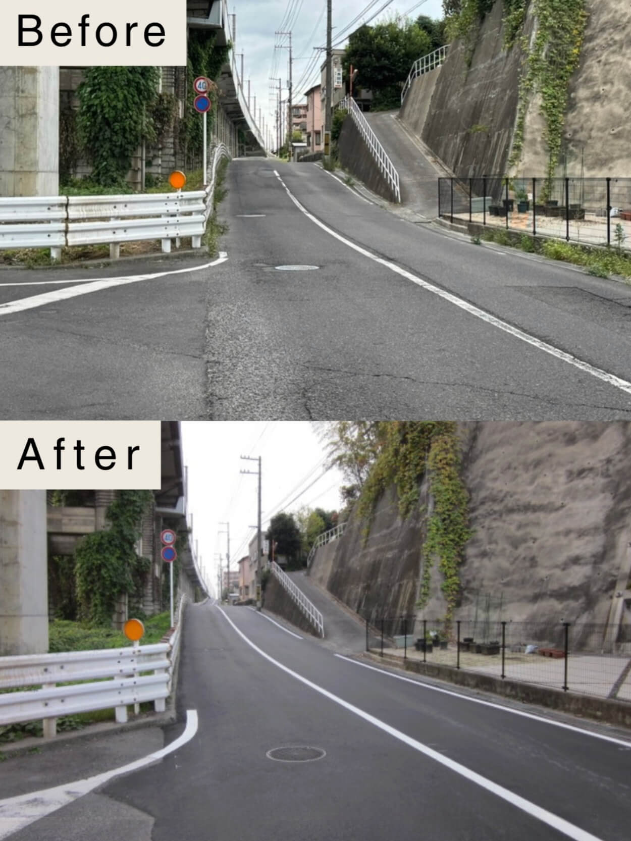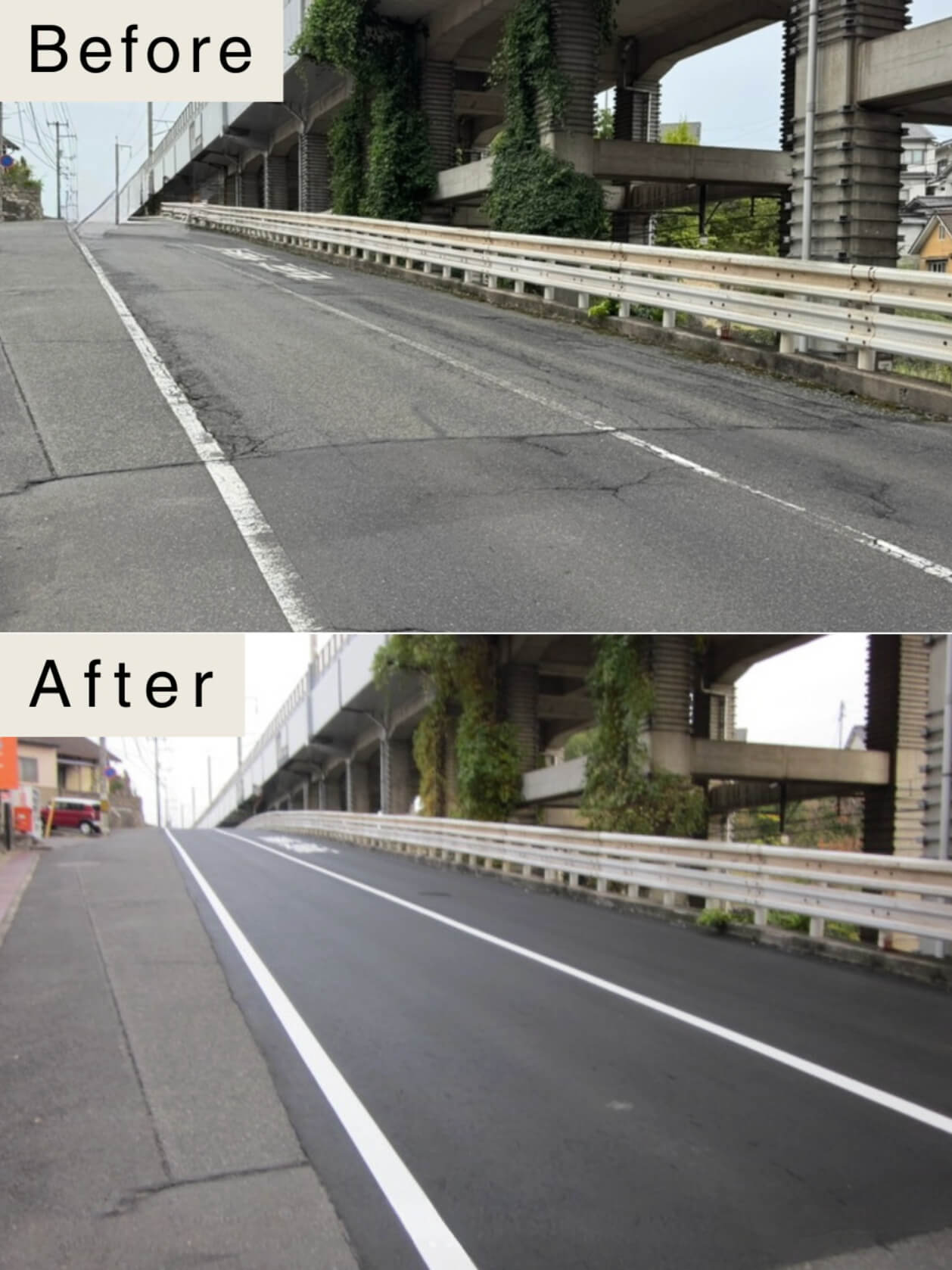既設舗装の切削を行ったうえで、新しい舗装への打ち替えを実施しました。